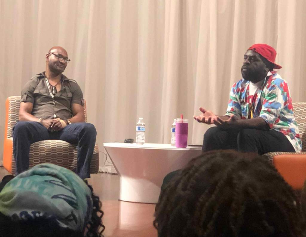 The keynote speaker for this years program was Hanif Abdurraqib, Columbus author, poet, and more. In a solo act starting off with curated readings from various published works and a few sneak peeks into future, followed by an interview with Daniel Gray-Kontar, Abdurraqib made me a fan. Unfamiliar with his work before this experience, his poise and lyrical channels were a whole vibe. I appreciated that the conversation was led by Gray-Kontar so it was natural, and seamless. There were heads nodding in agreement to the pictures painted and eloquet explanations of experiences alluded to in Abdurraqib’s words. Hanging on more, his art seemed delightfully relatable. His humbleness was regular with undertones of genius. One of Abdurraqib’s notable projects, Go Ahead in the Rain, in which he biographed A Tribe Called Quest, was written as a fan letter loop of inquiry that needed no response. He thought they would never actually read it, which made the writing more free and whimsical. Since then Abdurraqib has been busy, he shared a bit about his personal life, experience with relationship fails, and relocating back to Ohio. Engaging it all in stride, life is his work and he continues to find his own niche in the margins. Taking part in experiences and thinking deeply about them will always keep content coming, the shifting architecture of writer space allows for this in a multitude of ways, from celebration to rage.